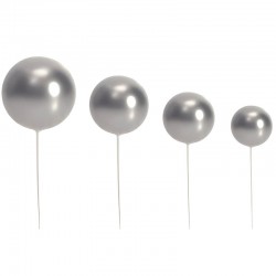 Dê um toque elegante e original às suas criações com o Conjunto de 20 Bolas Decorativas COR PRATA, ideal para embelezar bolos, tortas e mesas de eventos. Estas esferas decorativas são feitas de espuma (FOAM) de alta qualidade e arame, o que facilita sua colocação e garante uma apresentação impecável.