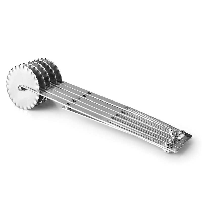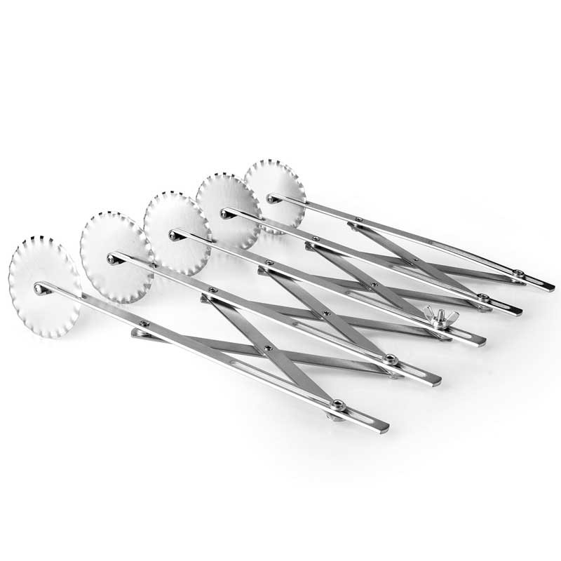 Cortador de macarrão extensível com 5 rodas onduladas. Diâmetro da roda 5,5 cm.
