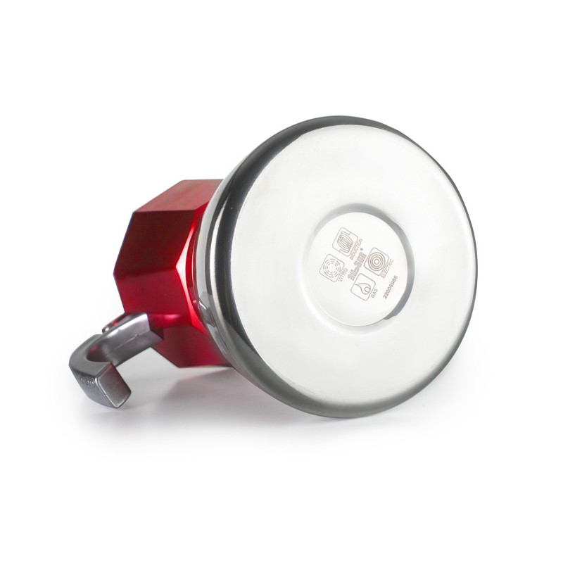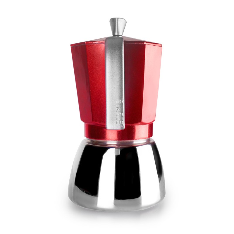 A Cafeteira Elba é um produto de alta qualidade fabricado em alumínio fundido e aço inoxidável pela marca Ibili. Esta cafeteira combina dois tipos de materiais e apresenta um elegante design bicolor com a parte superior em cor vermelho metalizado. É adequada para uso em todas as fontes de calor, incluindo a indução.