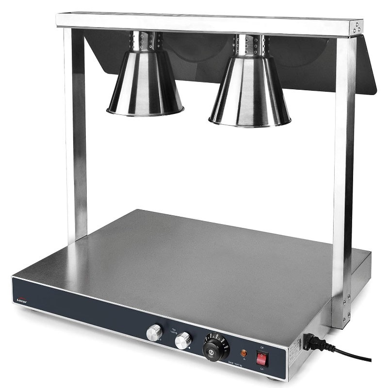 Placa aquecedora de aço inoxidável com regulagem de temperatura entre 40ºC - 90ºC. Lâmpadas halógenas para garantir uma temperatura homogênea com regulagem independente para cada uma delas. Tela protetora de plexiglass altamente resistente.