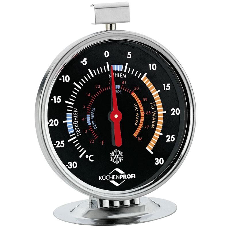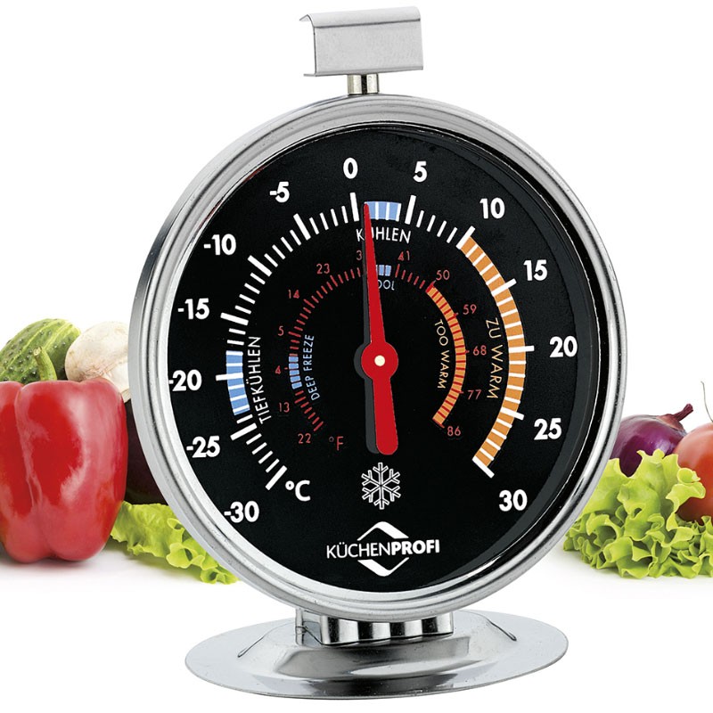 Mantenha seus alimentos frescos por mais tempo com o Termômetro para Refrigerador Preto da KÜCHENPROFI. Este termômetro permite controlar a temperatura de sua geladeira e congelador com precisão, garantindo que seus alimentos sejam armazenados na temperatura ideal.
