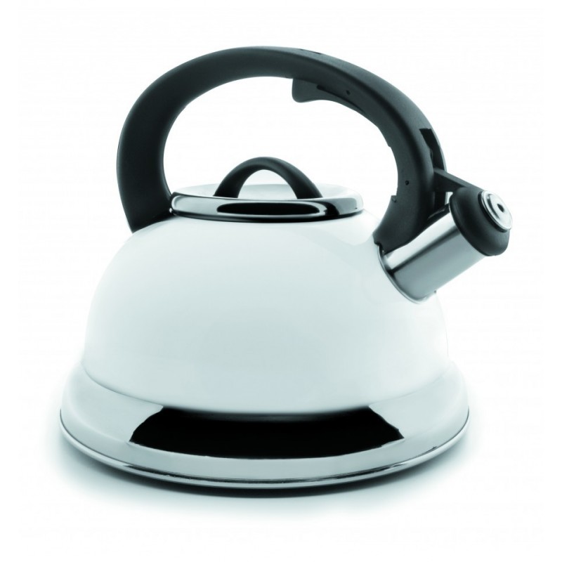 Chaleira apito para ferver água ou aquecer café já preparado e servi-lo. Capacidade de 2,5 Litros. Cor branca.