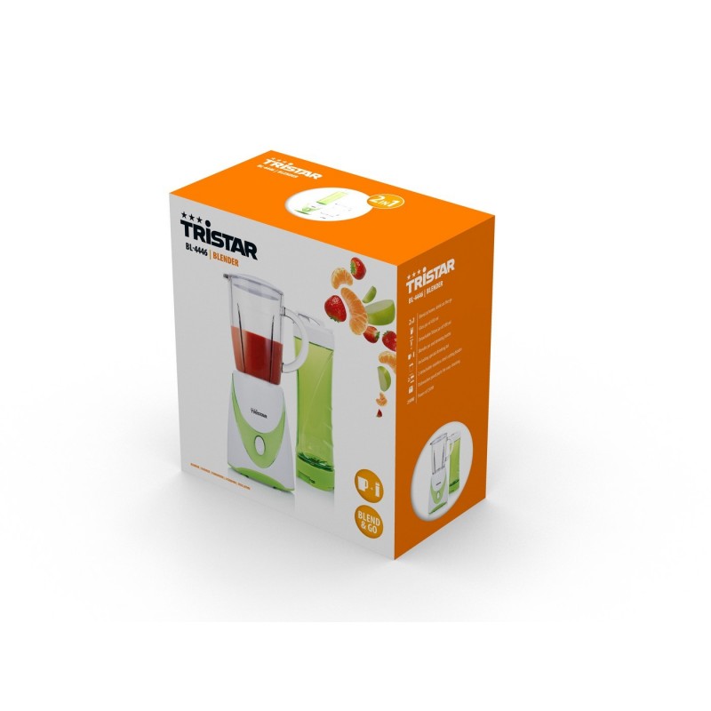 O Liquidificador Smoothie Tristar BL-4446 é um liquidificador compacto que resulta ideal para a preparação de uma ampla variedade de alimentos, desde smoothies dietéticos até sucos de frutas, e comidas para bebês. Oferece versatilidade e facilidade de uso graças a seus múltiplos acessórios e características.