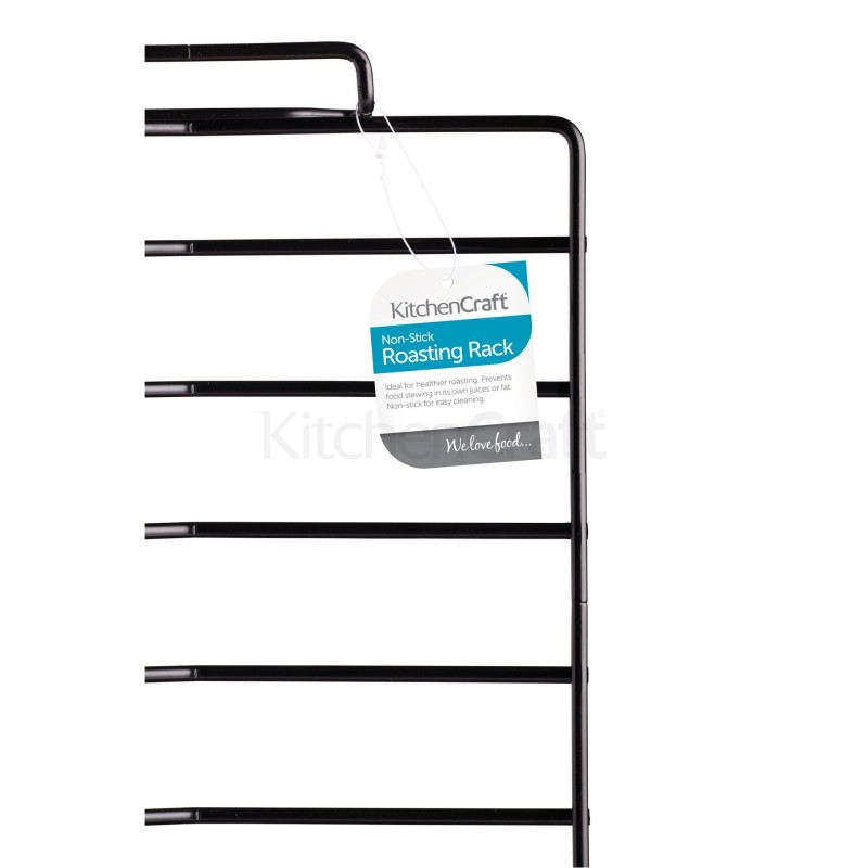 Grelha com revestimento antiaderente para cozinhar e assar no forno, ideal para cozinhar de maneira saudável utilizando-a dentro de uma fonte para permitir que a gordura caia na fonte e não entre em contato com o alimento.