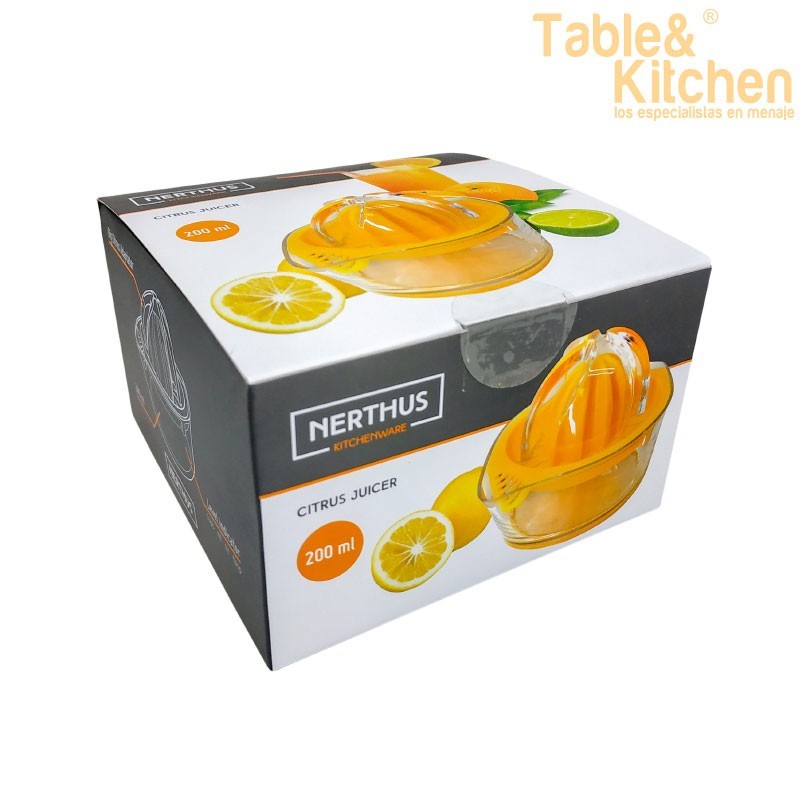 Possui dois cones de espremimento e um recipiente transparente com capacidade de 200 ml para o suco resultante.