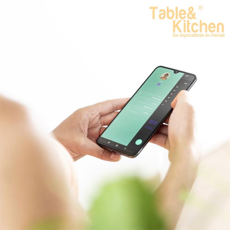 - Sem pilhas. Graças ao botão EcoPower, conseguimos gerar energia suficiente para que a balança funcione perfeitamente e de forma constante durante a medição sem necessidade de usar pilhas.