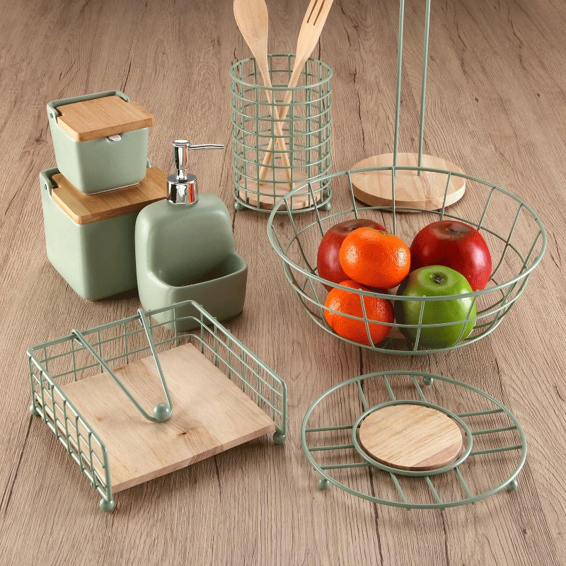 O Porta-Utensílios Verde da Versa Home é o aliado perfeito para manter a sua cozinha sempre organizada e com um toque fresco e atual. Fabricado com uma estrutura robusta de ferro resistente e base em madeira de seringueira natural, une durabilidade e design moderno. Seu acabamento em elegante tom verde dá um toque de cor que valoriza qualquer bancada ou prateleira.