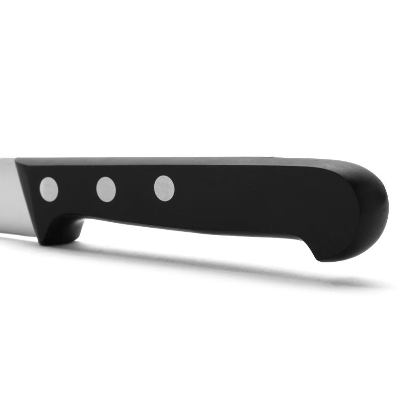 A faca de cozinha de 130 mm da Série Universal da Arcos é uma ferramenta essencial para o uso diário, combinando um design clássico com desempenho excepcional. Sua lâmina de 130 mm, fabricada em aço inoxidável NITRUM®, oferece um corte preciso e duradouro, ideal para limpar, cortar e picar vegetais com facilidade.