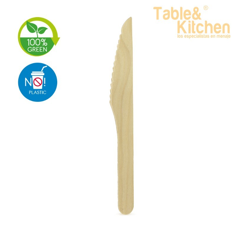 Conjunto composto por 20 facas de madeira de Bétula ecológicas e descartáveis.