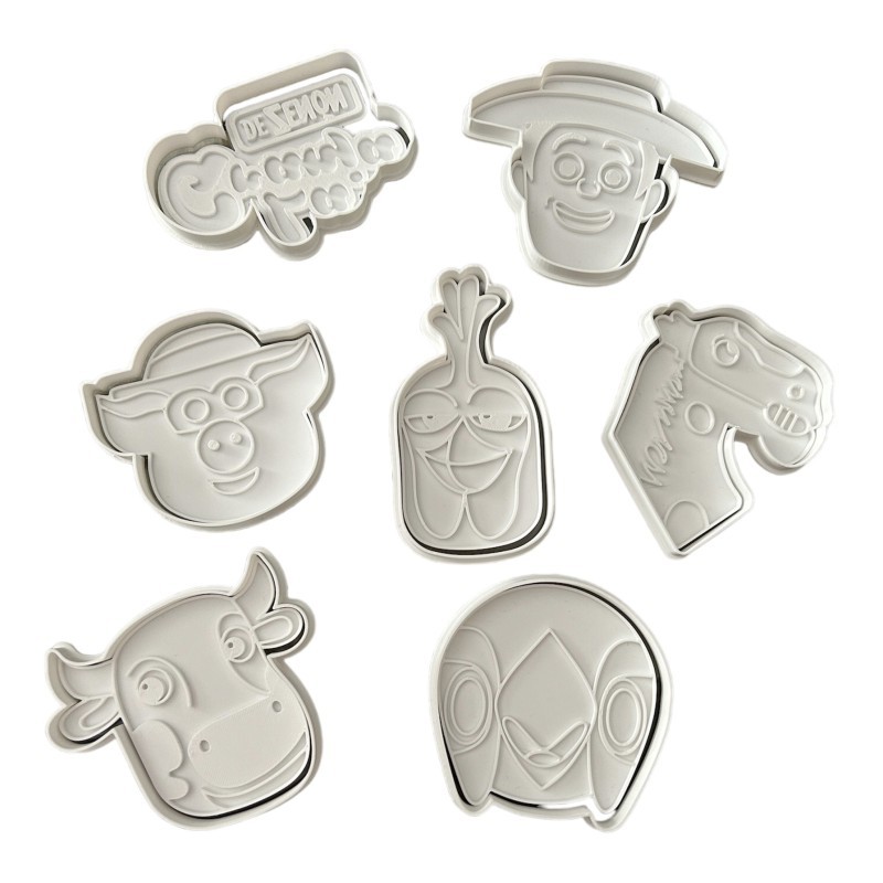 Os cortadores de massa da Fazenda do Zenón são ideais para os seguidores entusiastas desta série. Cada conjunto de cortadores apresenta os queridos personagens da Fazenda do Zenón, como Lola a vaca, Bartolito o galo e Buby a ovelha. Eles são confeccionados sob medida utilizando tecnologia de impressão 3D, o que garante precisão nos detalhes e facilita o recorte da massa para biscoitos. Adicione um toque de diversão e personalidade à sua cozinha com esses cortadores de biscoitos temáticos.