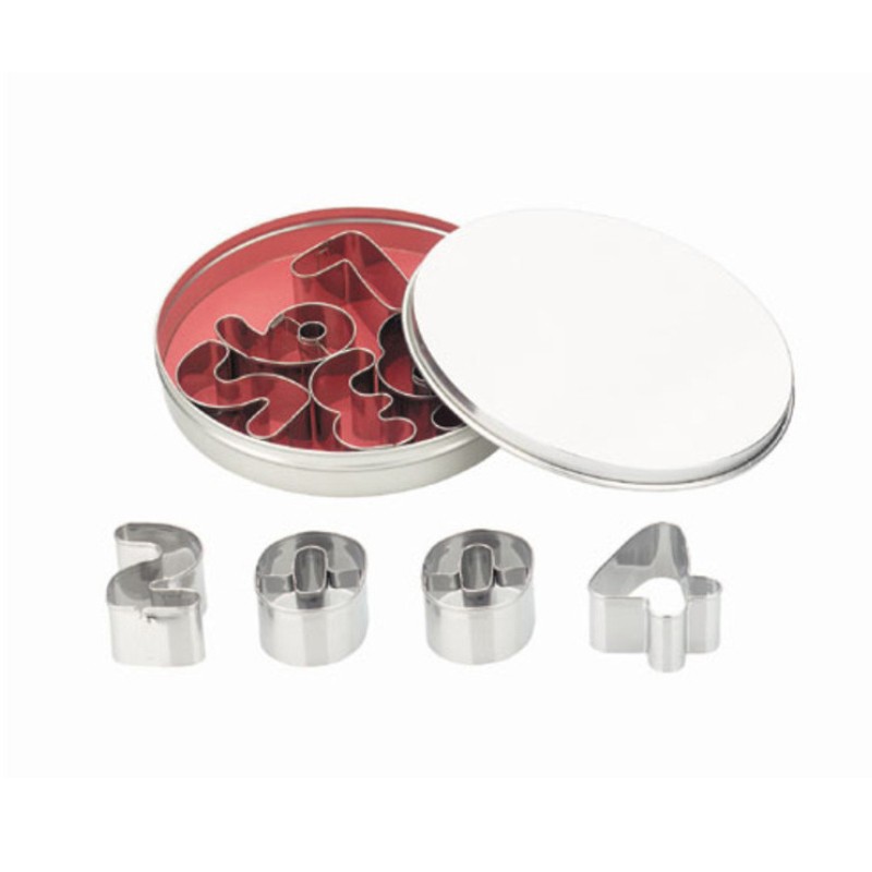 Cortadores de biscoitos estanhados com os números de 0 a 9 para fazer biscoitos.