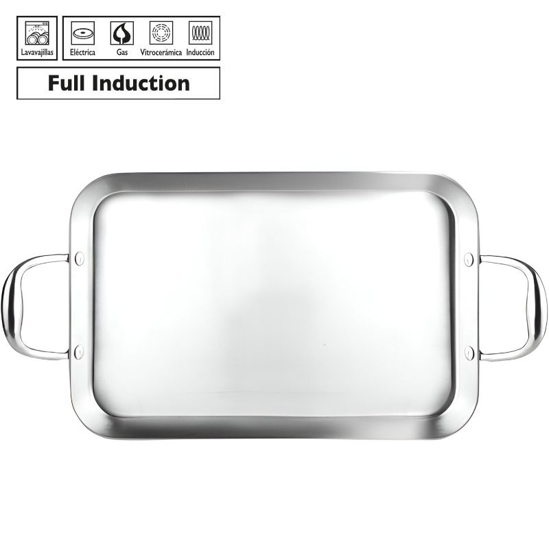 GRILL PLANCHA INOX TRIPLY NATURAL 38X25CM