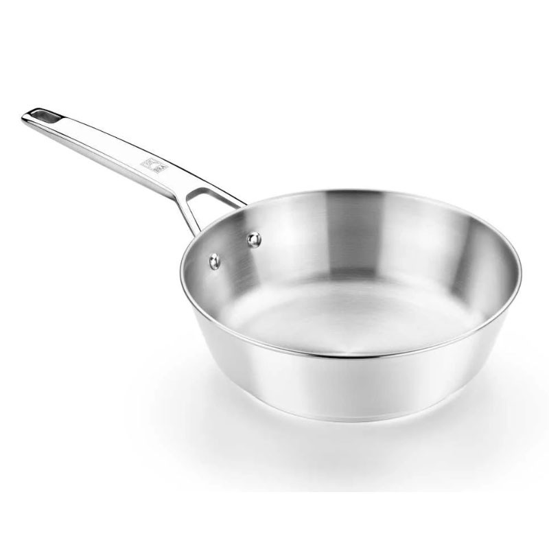 Frigideira funda em aço inox 18/10, sem antiaderente Signature e 24cm de diâmetro.
