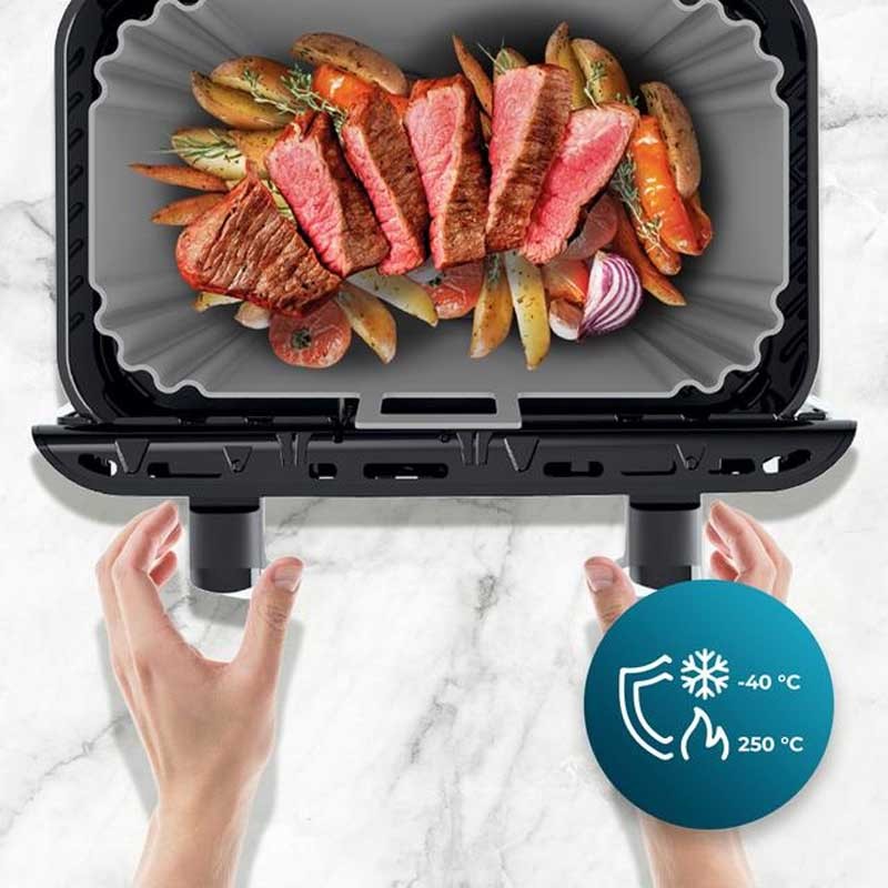 Materiais premium: material de silicone de alta qualidade e livre de BPA garante uso seguro em fritadeiras a ar, fornos, micro-ondas, freezers e lava-louças.
