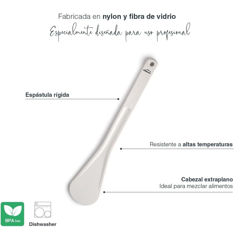 Espátula de design extraplano. Fabricado em nylon e fibra de vidro. É amplamente utilizado para panificação.