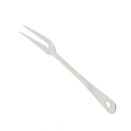 O garfo de trinchar é essencial na cozinha para segurar as carnes enquanto são cortadas. Os dentes longos e fortes penetram facilmente na carne, proporcionando uma aderência segura e estável, facilitando o corte preciso e profissional de carnes assadas e outros pratos principais.