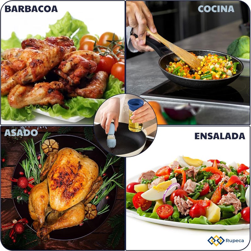 É perfeito para aplicar óleo com precisão ao cozinhar ou assar. Use para pincelar carnes na frigideira, vegetais assados, massas de tortas ou untar formas com manteiga. Também serve para confeitaria, marinadas e molhos. O design 2 em 1 substitui pincéis tradicionais que sujam e desperdiçam óleo.