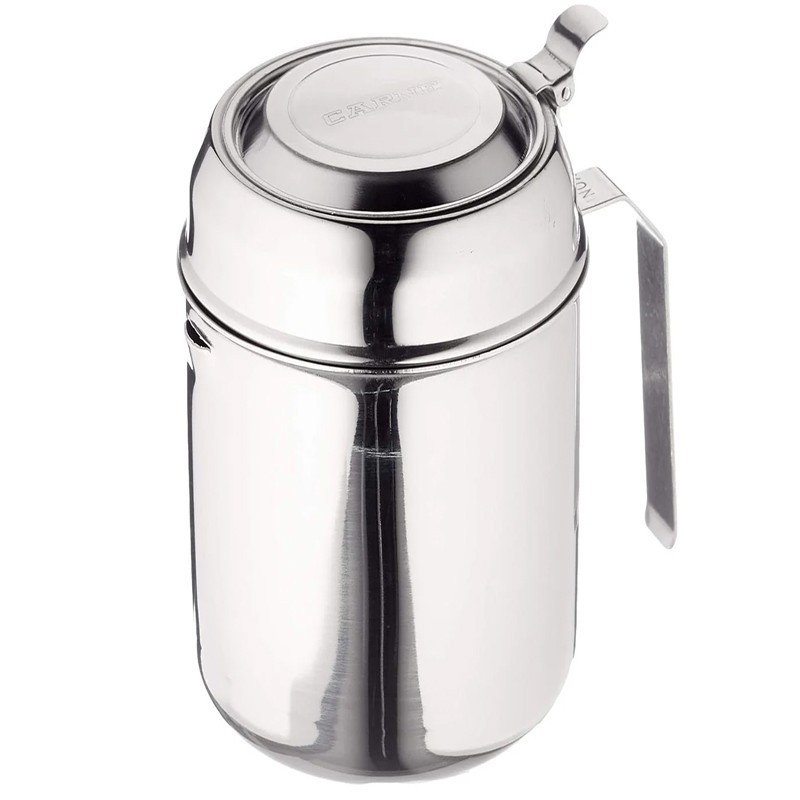 Este recuperador de óleo ou grasera é muito prático e serve para economizar o precioso óleo em nossas frituras. É fabricado em aço inoxidável, dispõe de tampa e, para garantir uma filtragem e higiene perfeitas, incorpora um filtro removível.