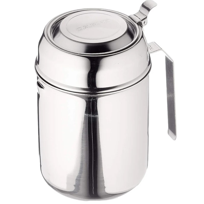 Este recuperador de óleo ou grasera é muito prático e serve para economizar o precioso óleo em nossas frituras. É fabricado em aço inoxidável, dispõe de tampa e, para garantir uma filtragem e higiene perfeitas, incorpora um filtro removível.