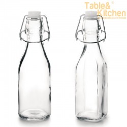 Garrafa de vidro para servir e transportar bebidas, com fecho hermético.