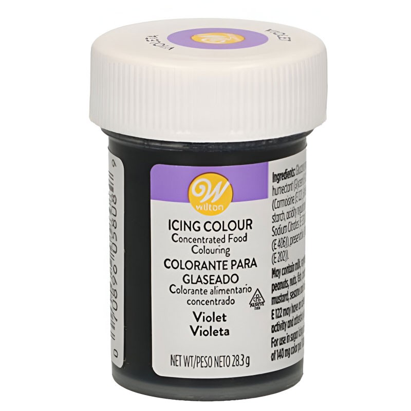 Corante alimentício Wilton em formato de gel concentrado na cor violeta.
