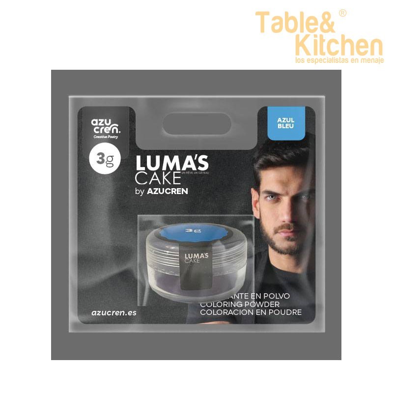 Corante em pó azul Luma's Cake de 3 gramas desenvolvido em colaboração com Javier de Luma's Cake, especialmente projetado para pintar bolos com uma pigmentação de alta qualidade devido ao seu grau de pureza e concentração.