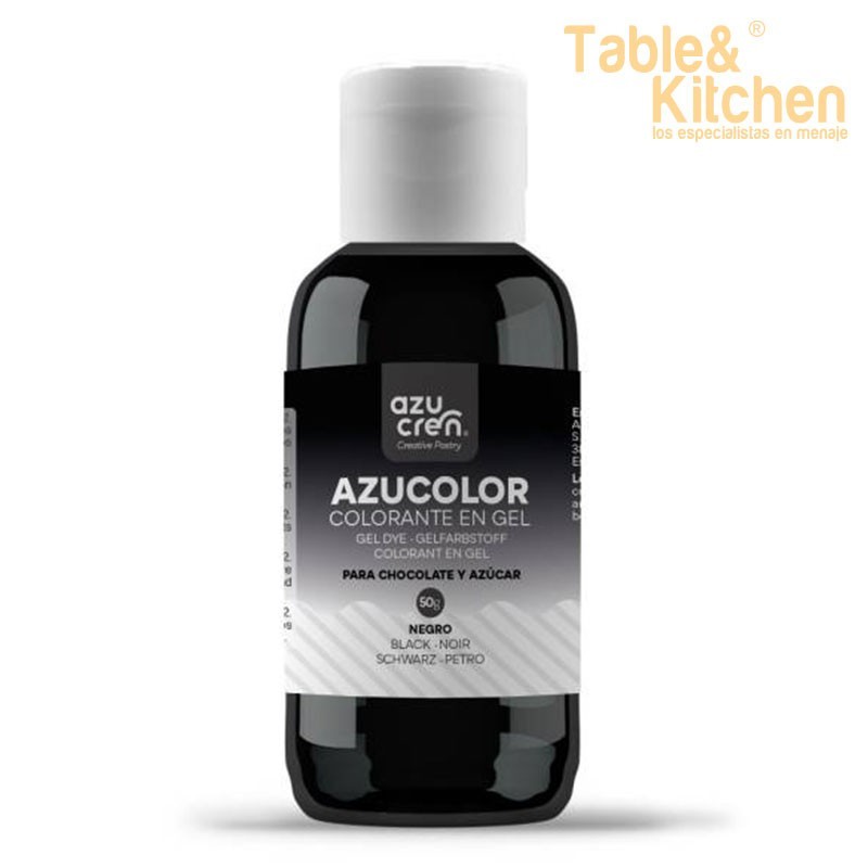 Corante em gel adequado para açúcar e para chocolate na cor negra da Azucren 50 gramas.