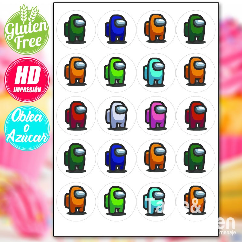 Impressão comestível para decoração de biscoitos com design de Among Us, modelo 002.