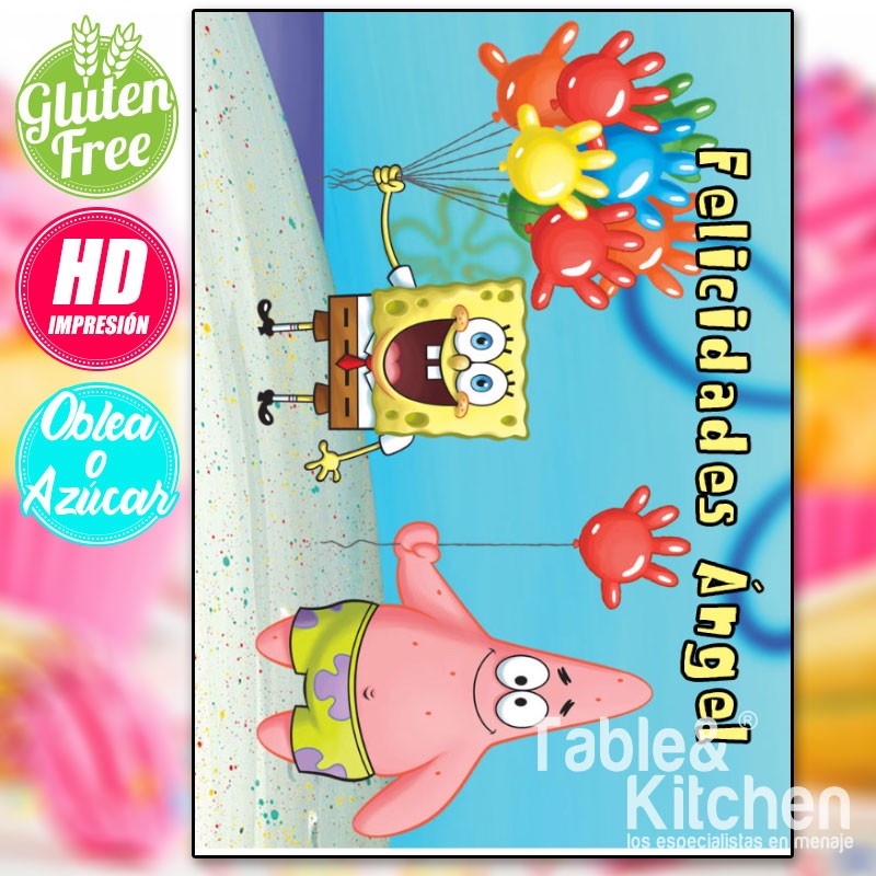 Impressão comestível para decoração de bolos com design de Bob Esponja, modelo 001. Projetado por Table&Kitchen.