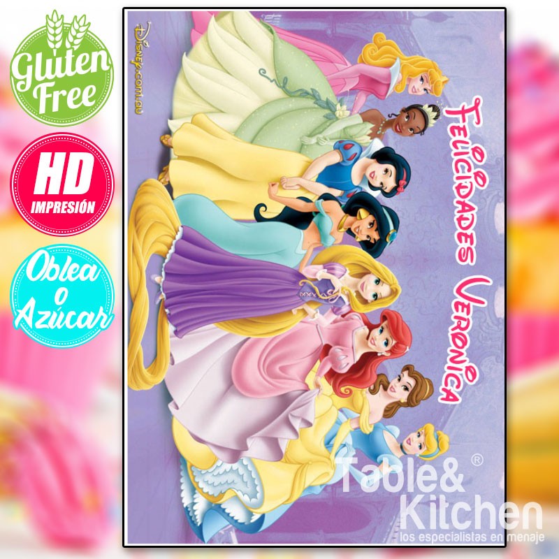 Impressão comestível para bolos de Princesas Disney, modelo 001. Desenhado por Table&Kitchen. O formato de impressão é um Din A4 (29 cm de altura x 21 cm de largura).