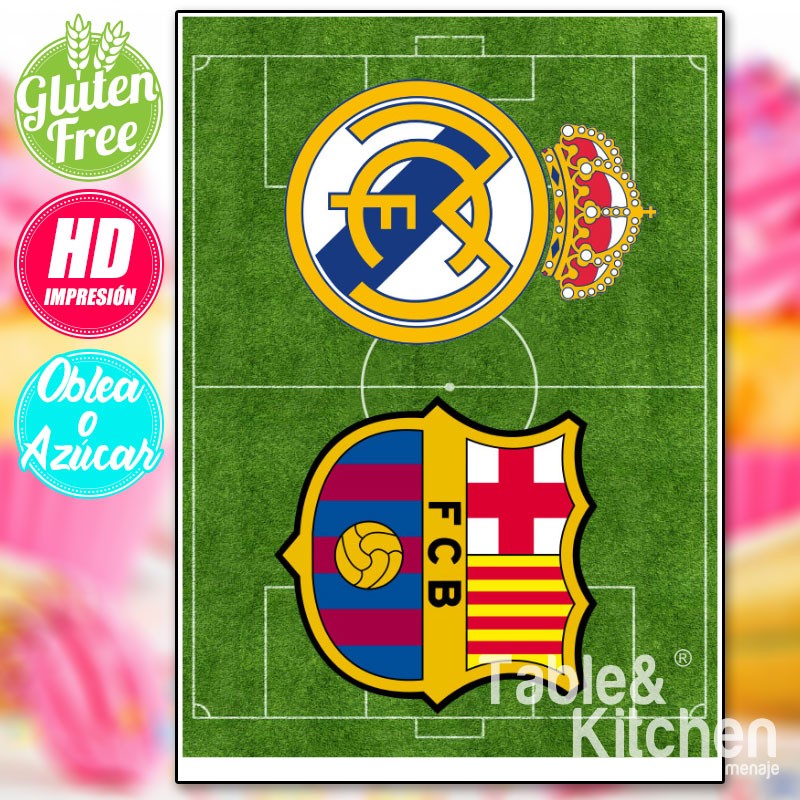 Comprar IMPRESSÃO COMESTÍVEL PARA BOLO REAL MADRID/BARCELONA MODELO 001