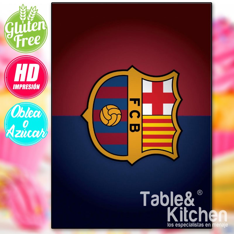 Impressão comestível para decoração de bolos com design do escudo do Barcelona. PROJETADO POR TABLE&KITCHEN.