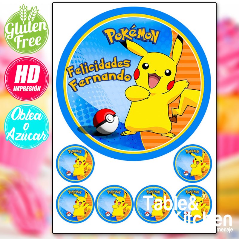 Impressão comestível para decoração de bolos com design de Pokemon. DESIGNADO POR TABLE&KITCHEN.