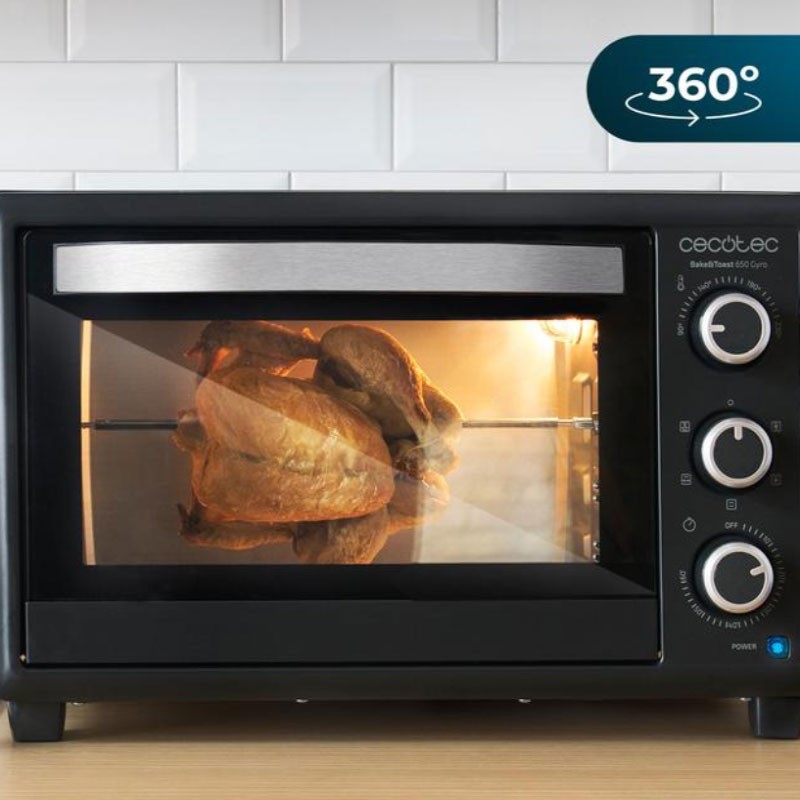 Asa a 360º: inclui um assador giratório que permite assar frangos com calor a 360º graças à sua capacidade de giro.