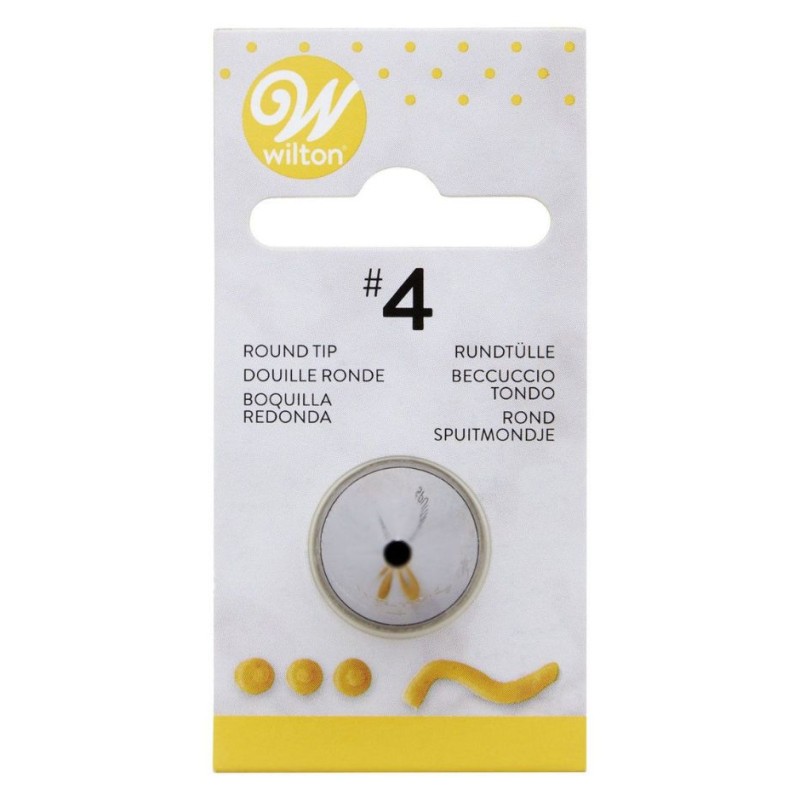 Com o bico Nº 4 da Wilton de saída redonda, você poderá realizar linhas, pontos e pequenos detalhes em bolos, cupcakes ou biscoitos.