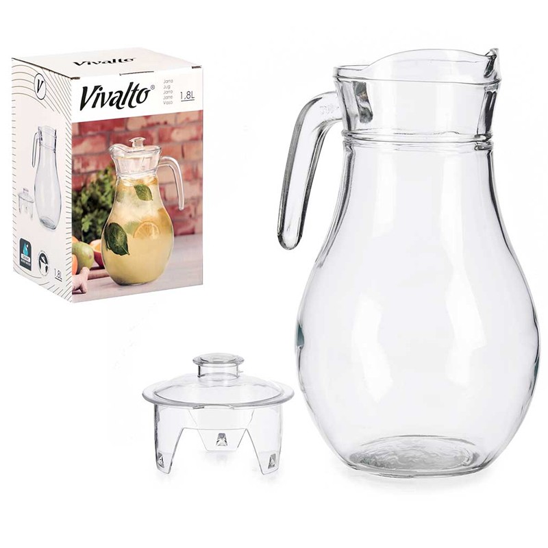 Jarro para todos os tipos de bebidas com tampa de vidro.
