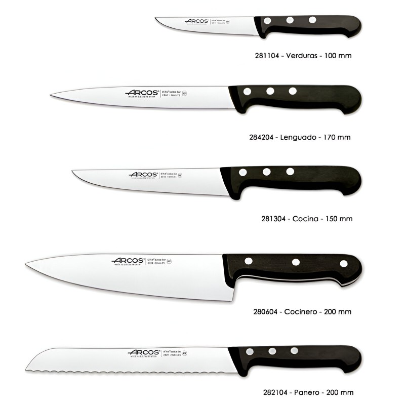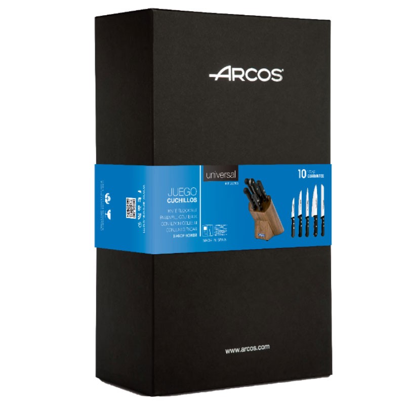 Este jogo inclui uma tacoma e 5 facas da série Universal da Arcos. A série Universal da Arcos apresenta um design clássico ideal para o uso diário.