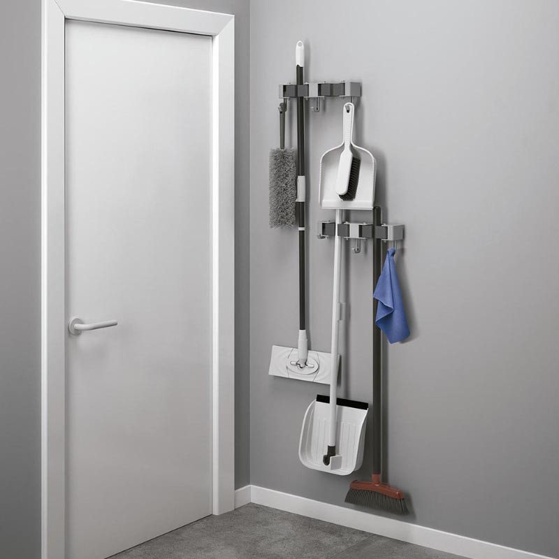- Composto por suporte para 2 vassouras, mopas ou esfregões