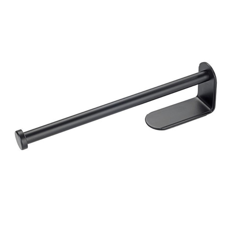 Elegante porta rolo de alumínio de cor preta com adesivo. Você não precisará fazer buracos na parede para ter seu papel toalha à mão e sem ocupar espaço na bancada.