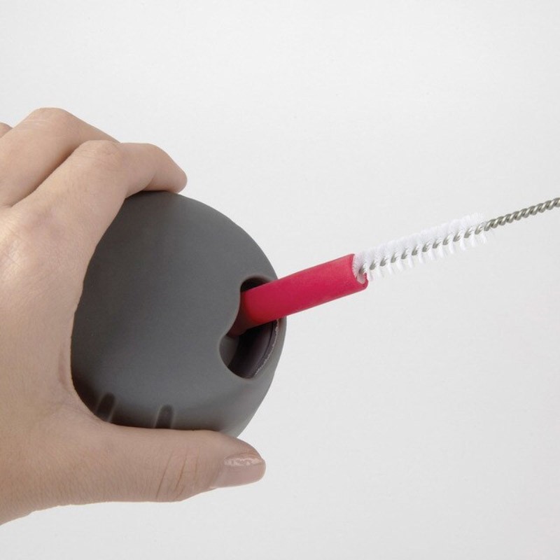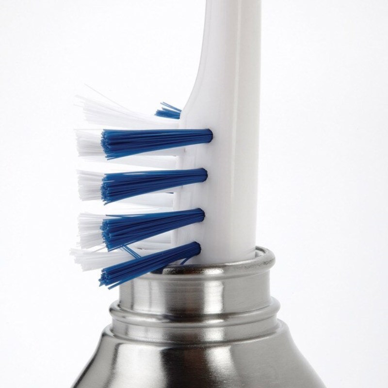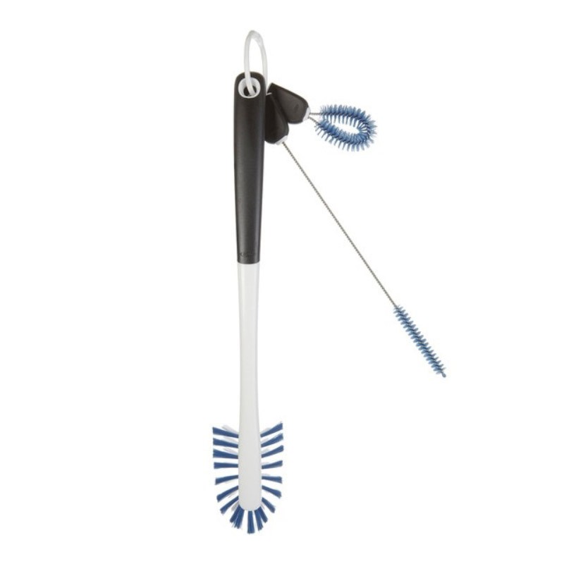Conjunto de 3 escovas projetadas para limpar garrafas, potes e frascos da marca Oxo.