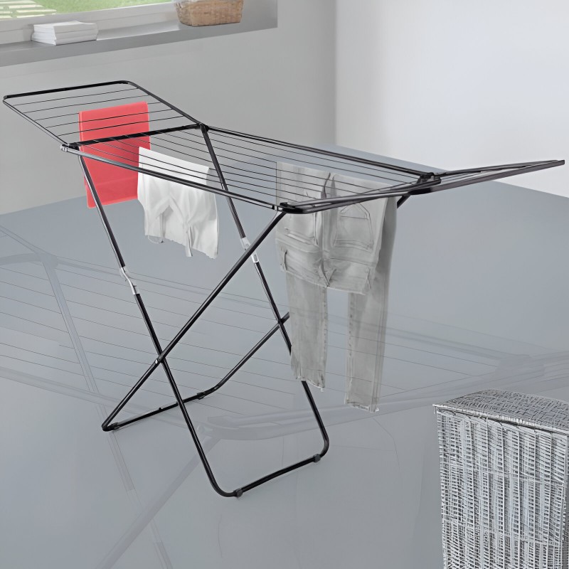 - Design Dobrável: As asas dobráveis permitem adaptar o espaço de secagem conforme suas necessidades e facilitam o armazenamento quando não estão em uso.