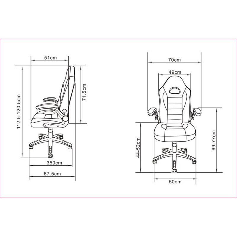 - Altura dos braços: 69-77 cm