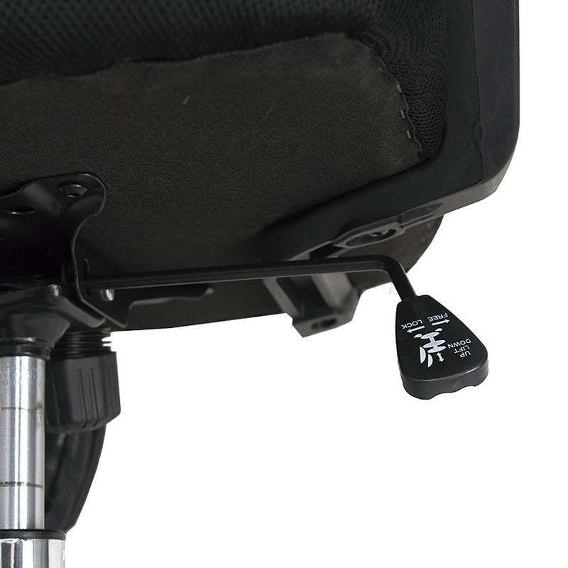Cadeira de escritório modelo Martina na cor preta com encosto em rede e assento em tecido para proporcionar conforto durante longas horas de trabalho. Seu design inclui um encosto respirável que ajuda a manter uma temperatura adequada enquanto se trabalha.