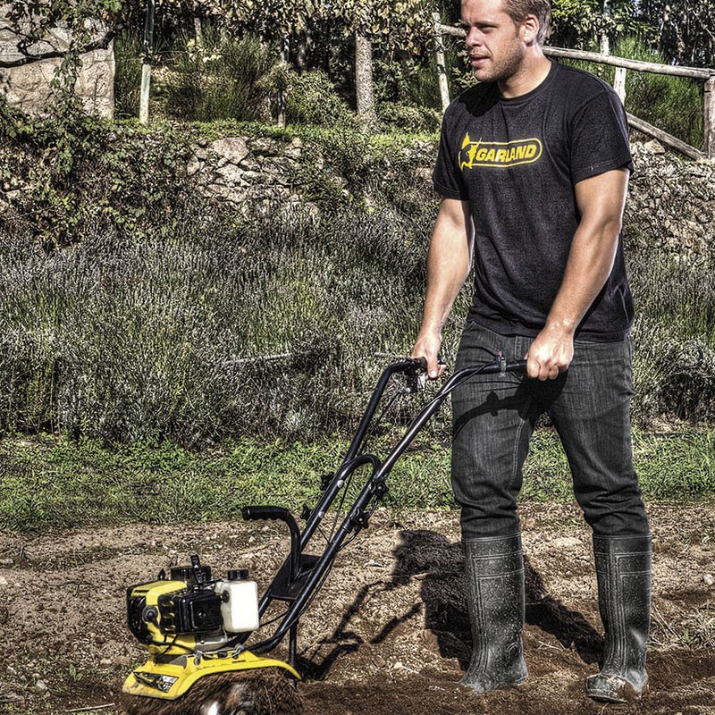 A Motoazada Leve GARLAND Mule 341 G é uma ferramenta potente e versátil para trabalhos de jardinagem e agricultura. Projetada para trabalhar em espaços reduzidos e terrenos de pequena e média extensão.