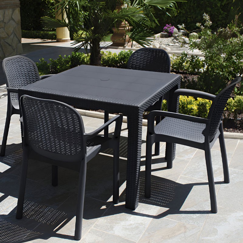 A resina injetada, um material plástico de alta densidade, oferece uma combinação única de resistência e versatilidade. Esta nova geração de móveis conta com uma proteção anti-raios UVA que preserva sua cor e qualidade apesar da exposição ao sol. Com uma durabilidade excepcional e resistência à oxidação, os móveis de resina são a escolha perfeita para espaços externos sem complicações de manutenção.
