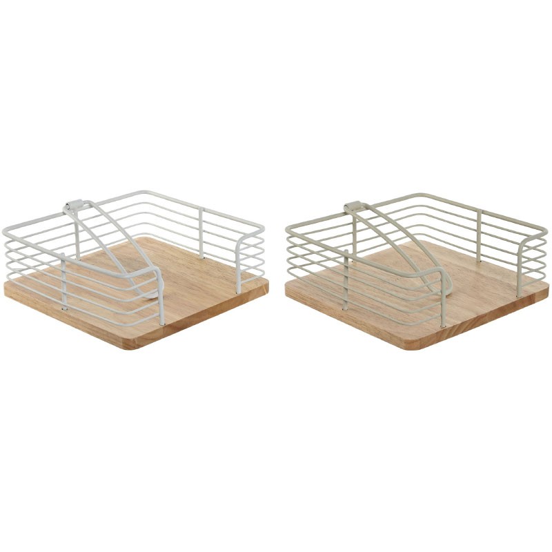 O conjunto de 2 porta-guardanapos de metal e madeira de borracha combina elegância moderna com funcionalidade versátil para organizar seus guardanapos com estilo em qualquer ocasião.