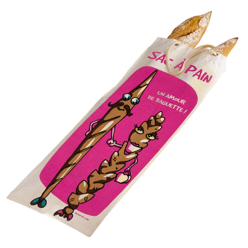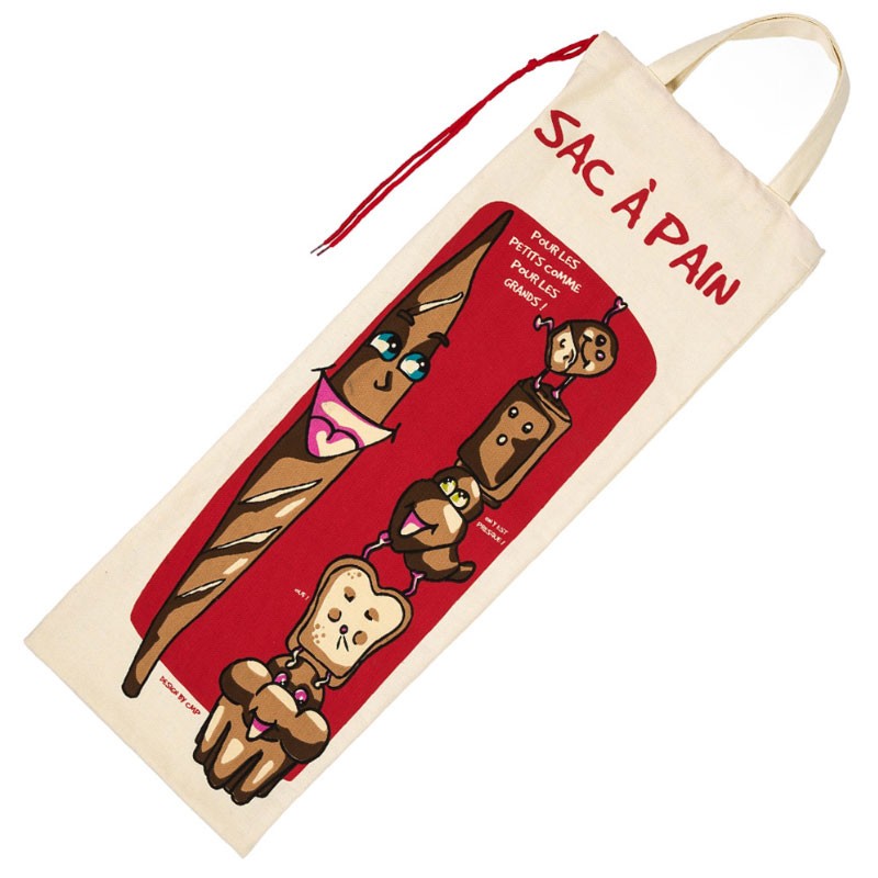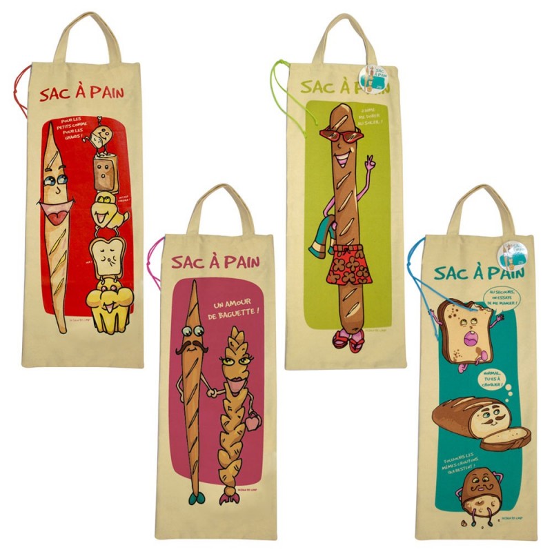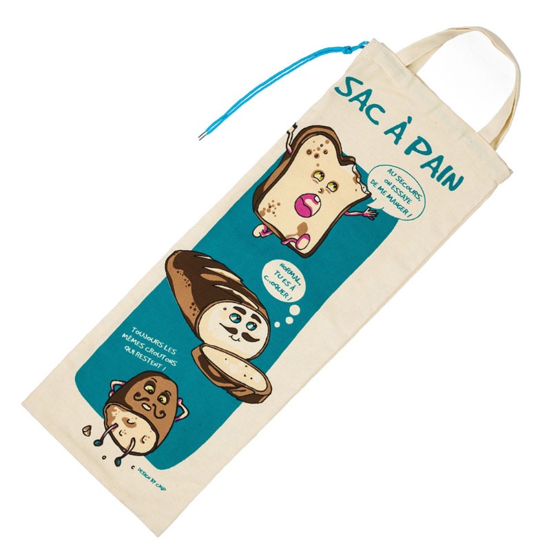 Bolsa projetada para o armazenamento de pão, confeccionada em algodão.