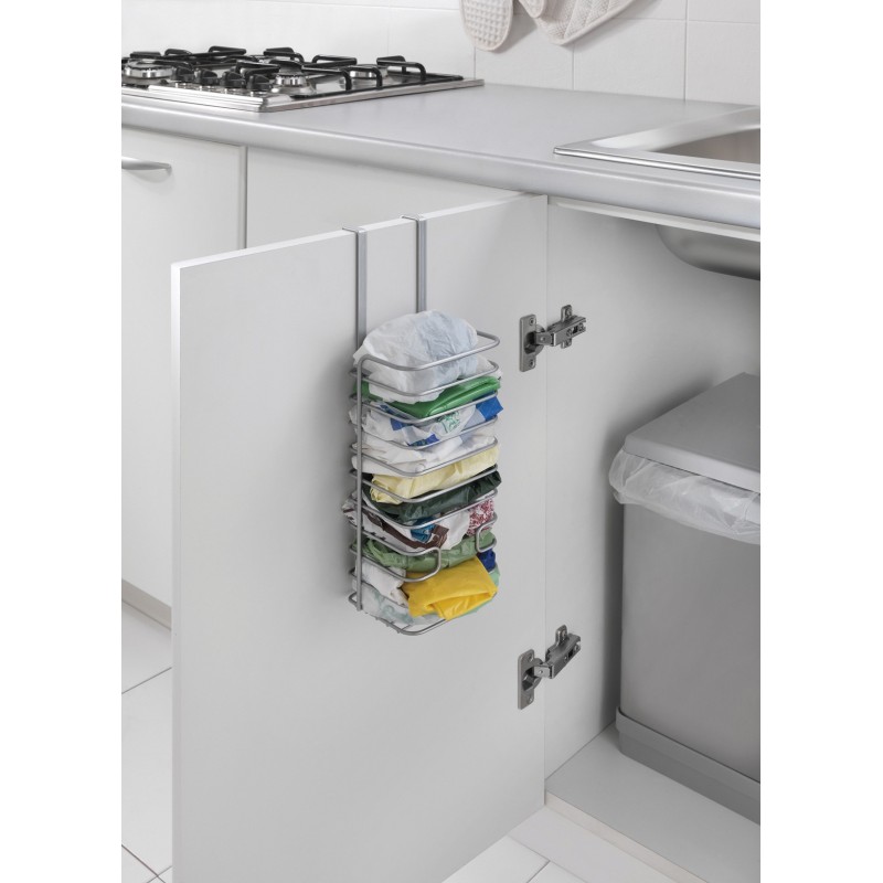 Dispensador de sacos Série Galileo, projetado para manter os sacos plásticos sempre acessíveis e bem organizados. Este produto faz parte da linha Galileo, que facilita a organização da cozinha sem a necessidade de ferramentas, mantendo seus armários em perfeito estado e ao seu gosto.