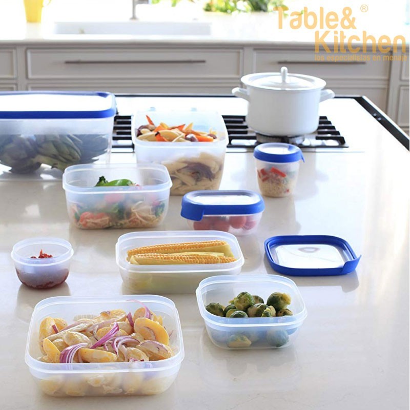 Bote hermético de alta qualidade para conservar alimentos frescos, restos de comida, líquidos e alimentos congelados. A junta de cor garante a hermeticidade e oferece um sistema de fácil abertura/fechamento.