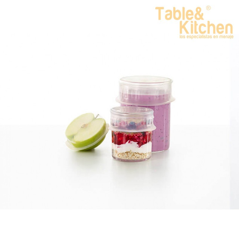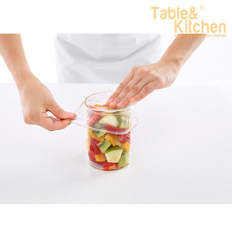 Além dessas características, estas tampas são elásticas, o que lhes permite ajustar-se confortavelmente a recipientes de diferentes diâmetros. Também oferecem um hermetismo eficaz com uma simples pressão na parte superior da tampa.